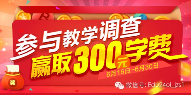 參與方式:在活動頁面注冊新用戶名,注冊成功后,回答有關教學的調查問卷,即可獲取300元學費,學費會在提交問卷后自動存到您的用戶中心。