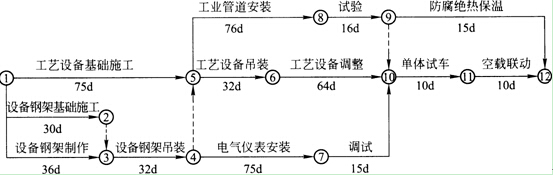 3.施工單位調(diào)整計(jì)劃后能保證按原計(jì)劃工期實(shí)現(xiàn),因?yàn)殇摻Y(jié)構(gòu)設(shè)計(jì)制作耽誤10天,但吊鋼結(jié)構(gòu)有自由時(shí)差7天,工藝設(shè)備壓縮3天,總工期仍是191天。