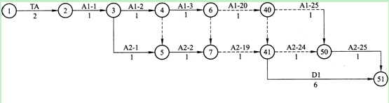 6.如果時間按整天考慮,各中繼段的作業組正常施工,在考慮流水作業的情況下,針對A中繼段畫出雙代號網絡圖。假設A中繼段光纜接續測試需要6天。