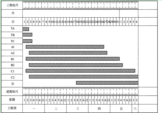 4.此工程項目經理部采用流水作業法合適。因為采用流水作業法的條件是: