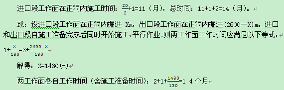 (2)如采用單口掘進,正洞掘進持續時間:2600/130=20個月