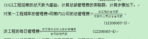 索賠的總部管理費(fèi)=該工程的每日管理費(fèi)×工程延期的天數(shù)(1Z206063-5)