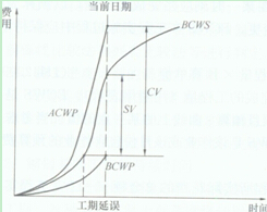 利用贏得值分析法曲線可進行費用進度評價,圖中所示的項目,CV<0,SV<0,這表示項目執行效果不佳,即費用超支,進度延誤,應采取相應的補救措施。