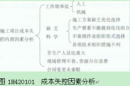 一般情況下,造成機電工程項目成本失控的內部因素如圖1H420101所示。