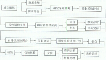 主要工作包括接收請購文件、確定合格供應商、招標或詢價、報價評審或評標定標、召開供應商協調會、簽訂合同、調整采購計劃、催交、檢驗、包裝及運輸等。
