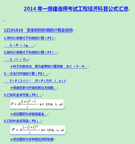 2014年一級(jí)建造師考試工程經(jīng)濟(jì)科目公式匯總(環(huán)球網(wǎng)校整理).rar