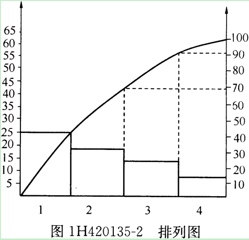 3.針對事件2的質量問題,建立統計表(表1H420135-2),畫出排列圖(圖1H420135-2)。