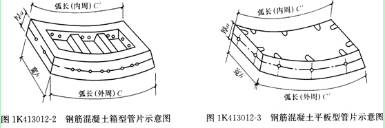 按管片螺栓手孔大小,可將管片分為箱型和平板型兩類。箱型管片是指因手孔較大而呈肋板型結構,手孔較大不僅方便了接頭螺栓的穿人和擰緊,而且也節(jié)省了材料,使單塊管片重量減輕,-便于運輸和拼裝。但因截面削弱較多,在盾構千斤頂推力作用下容易開裂,故只有強度較大的金屬管片才采用箱型結構。當然,直徑和厚度較大的鋼筋混凝土管片也有采用箱型結構的。在箱型管片中縱向加勁肋是傳遞千斤頂推力的關鍵部位,一般沿襯砌環(huán)向等距離布置,加勁肋的數量應大于盾構千斤頂的臺數,其形狀應根據管片拼裝和是否需要灌注二次襯砌的施工要求而定,見圖1K413012-2。平板型管片是指因螺栓手孔較小或無手孔而呈曲板型結構的管片,由于管片截面削弱少或無削弱,故對盾構千斤頂推力具有較大的抵抗力,對通風的阻力也較小。無手孔的管片也稱為砌塊,現代的鋼筋混凝土管片多采用平板型結構見圖1K413012-3 。