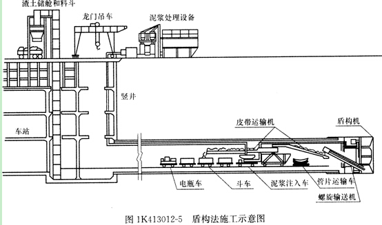 (1)盾構法施工見圖1K413012-5,其基本施工步驟: