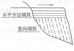 ④聯(lián)合填筑法:路堤下層用橫向填筑而上層用水平分層填筑。適用于因地形限制或填筑堤身較高,不宜采用水平分層法或橫向填筑法自始至終進行填筑的情況。單機或多機作業(yè)均可,一般沿線路分段進行,每段距離以20~40m為宜,多在地勢平坦,或兩側有可利用的山地土場的場合采用。