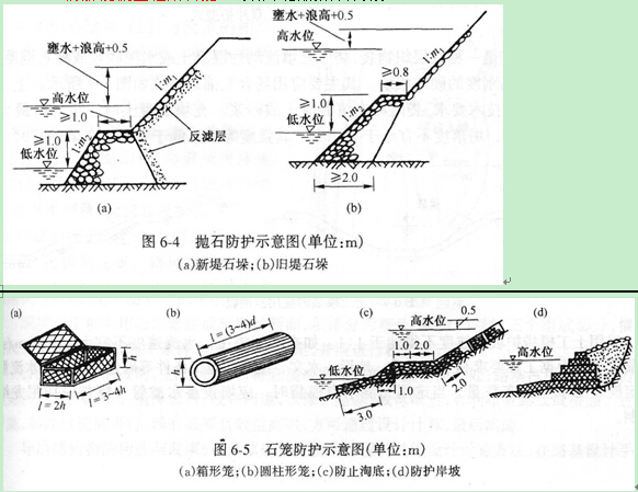 (2)石籠:沿河路堤坡腳或河岸,當受水流沖刷和風浪侵襲,且防護工程基礎不易處理或沿河擋土墻、護坡基礎局部沖刷深度過大時,可采用石籠防護。