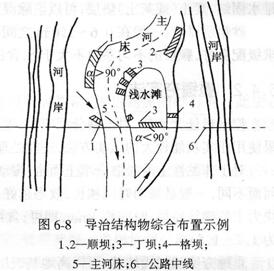 (2)丁壩:適用于寬淺變遷河段用以挑流或減低流速,減輕水流對河岸或路基的沖刷。