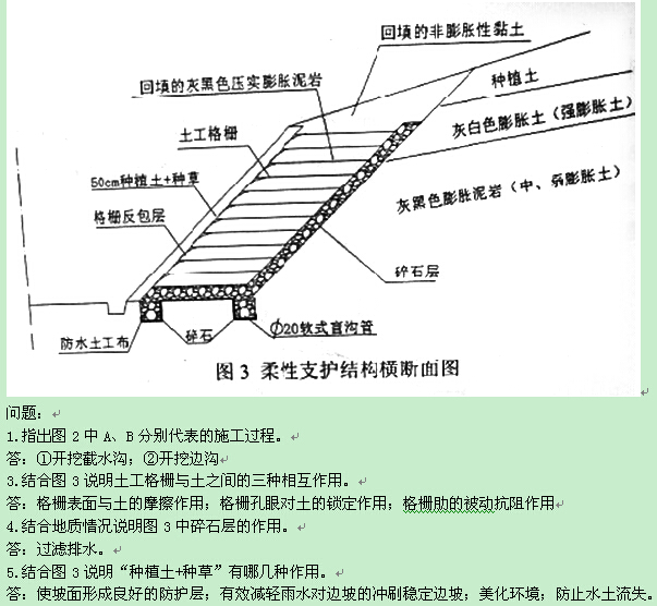 A.錨桿鋼絲網噴漿;B.漿砌片石骨架植草護坡