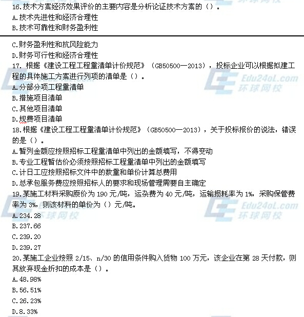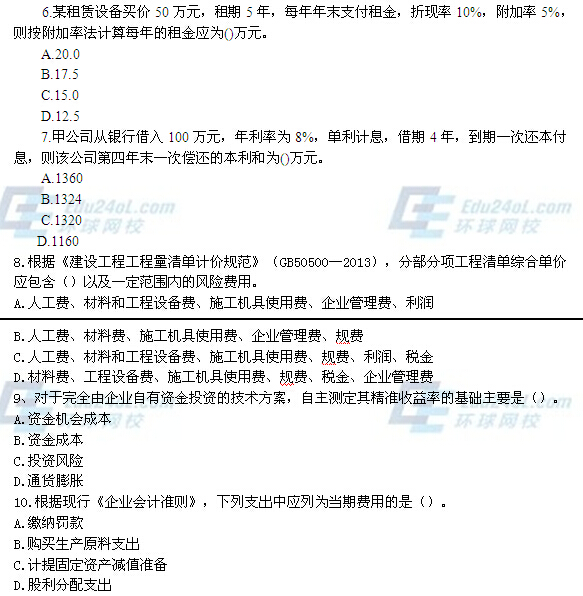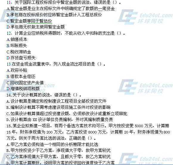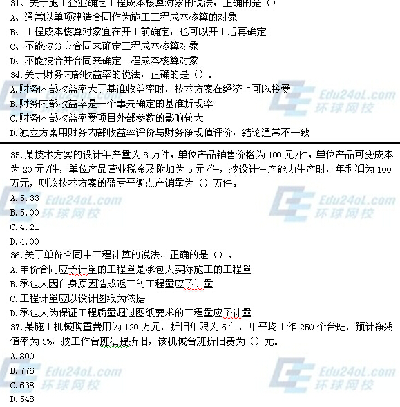 【摘要】一級建造師考試剛剛結束,各位考生一定非常關注本次考試的試題和參考答案等信息,環球網校一級建造師考試頻道為方便各位考生估分,特地為大家及時整理了本次一級建造師考試的真題,并附解析與參考答案,本文為2014年一級建造師《工程經濟》真題(圖片版),希望能夠對各位一級建造師考生有所幫助。更多復習報考資料及試題敬請關注環球網校一級建造師考試頻道,您可以按【ctrl鍵+D】手動收藏此頁面。