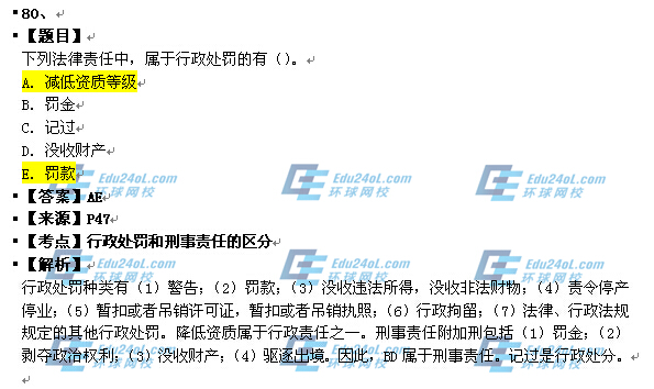 【摘要】一級(jí)建造師考試剛剛結(jié)束,各位考生一定非常關(guān)注本次考試的試題和參考答案等信息,環(huán)球網(wǎng)校一級(jí)建造師考試頻道為方便各位考生估分,特地為大家及時(shí)整理了本次一級(jí)建造師考試的真題,并附解析與參考答案,本文為2014年一級(jí)建造師《工程法規(guī)》真題解析(71-80),希望能夠?qū)Ω魑灰患?jí)建造師考生有所幫助。更多復(fù)習(xí)報(bào)考資料及試題敬請(qǐng)關(guān)注環(huán)球網(wǎng)校一級(jí)建造師考試頻道,您可以按【ctrl鍵+D】手動(dòng)收藏此頁面。