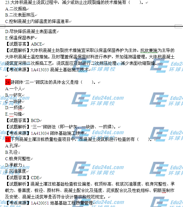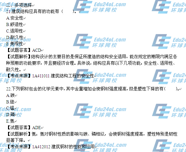 【摘要】一級建造師考試剛剛結束,各位考生一定非常關注本次考試的試題和參考答案等信息,環球網校一級建造師考試頻道為方便各位考生,特地為大家及時整理了本次一級建造師考試的真題,并附解析與參考答案,本文為2014年一級建造師《建筑工程》真題解析(多選題),希望能夠對各位一級建造師考生有所幫助。更多復習資料及試題敬請關注環球網校一級建造師考試頻道,您可以按【ctrl鍵+D】手動收藏此頁面。