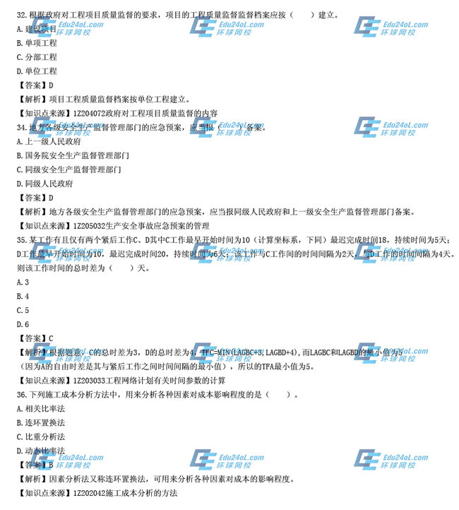 【摘要】一級建造師考試剛剛結束,各位考生一定非常關注本次考試的試題和參考答案等信息,環球網校一級建造師考試頻道為方便各位考生,特地為大家及時整理了本次一級建造師考試的真題,并附解析與參考答案,本文為2014年一級建造師《項目管理》真題解析(31-40),希望能夠對各位一級建造師考生有所幫助。更多復習資料及試題敬請關注環球網校一級建造師考試頻道,您可以按【ctrl鍵+D】手動收藏此頁面。