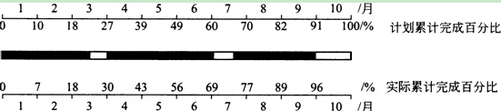 縱坐標表示任務量,實際進度點位于計劃S曲線右側,則同一時間刻度上計劃完成工程量比實際完成多,垂直距離表示兩者的差額。