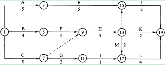 其關鍵線路(關鍵工作法表示)為:A→B→D→H和A→B→C→F―H 。