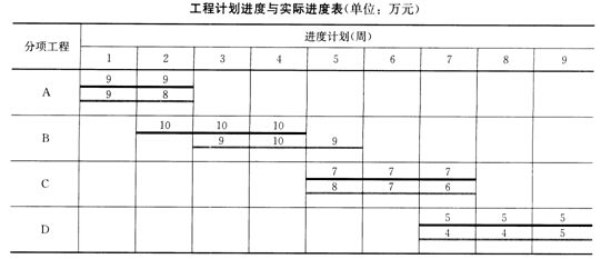 進(jìn)度偏差:SV= BCWP-BCWS= 38-48=10萬元<0,表示進(jìn)度拖后,即:實(shí)際進(jìn)度落后于計劃進(jìn)度。