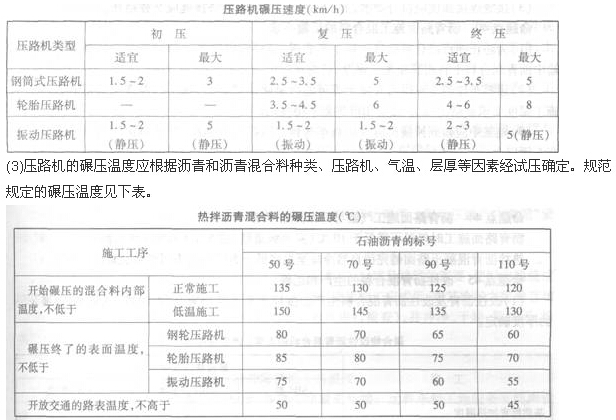 (2)碾壓速度做到慢而均勻,應符合規范要求的壓路機碾壓速度(km/h),如下表所示。