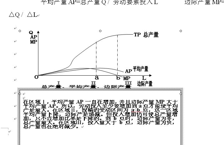 35、企業(yè)在資本等生產(chǎn)要素固定不變時(shí),勞動(dòng)投入的增加量應(yīng)在區(qū)域Ⅱ,即a~b點(diǎn)。