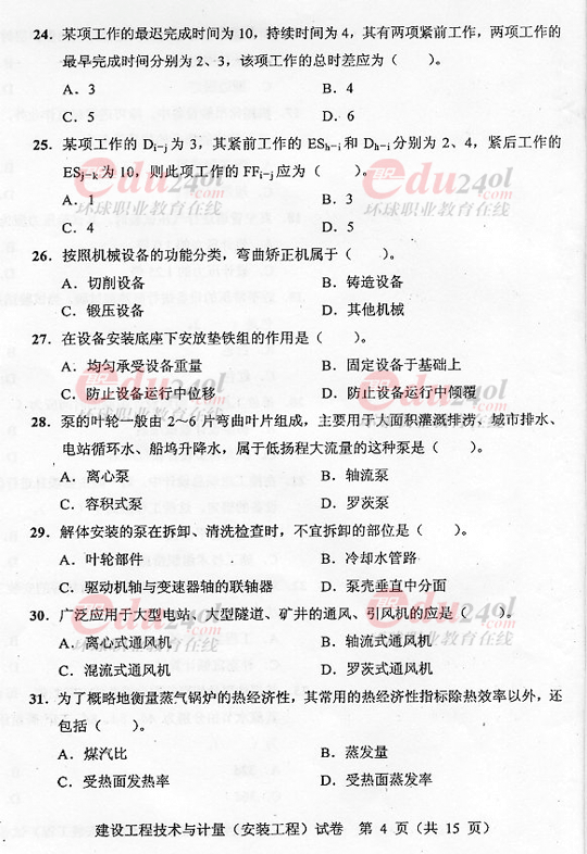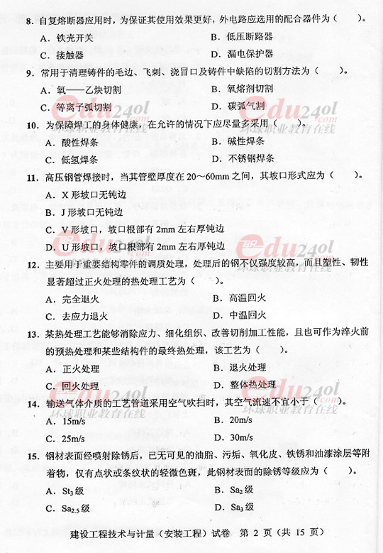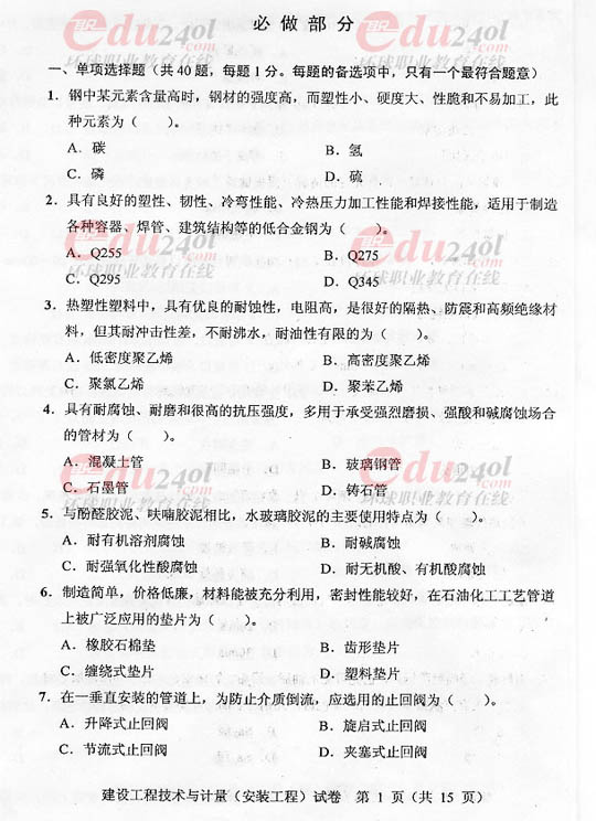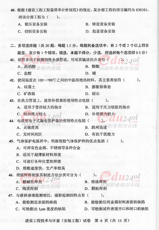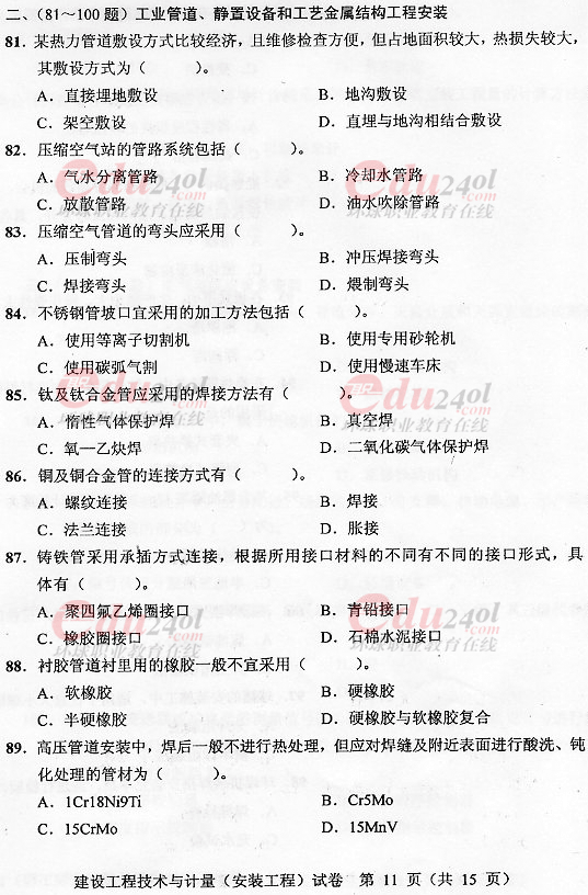 - 2025年一級造價師《安裝計量》真題答案41-50題2025-10-23