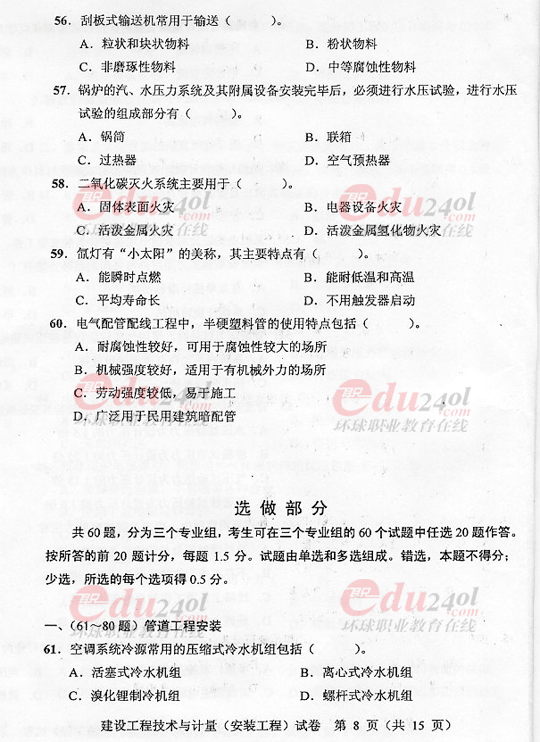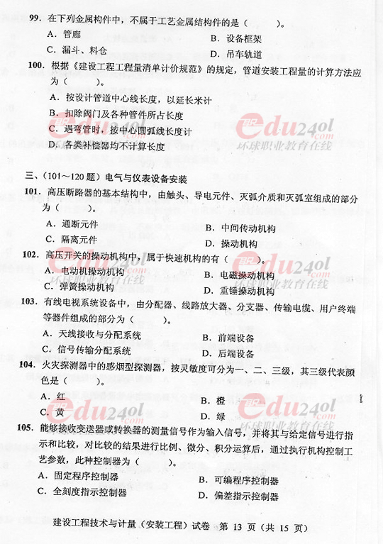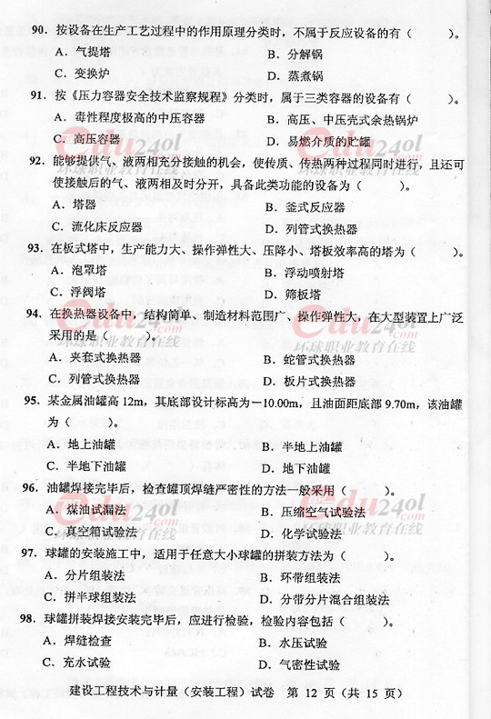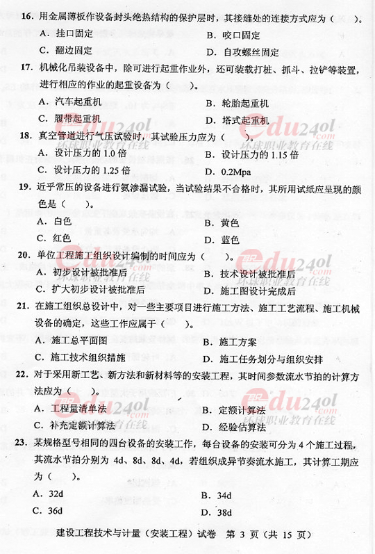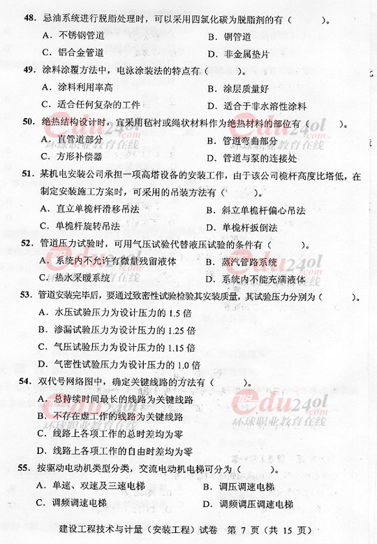 2007年造價工程師《建設工程技術與計量(安裝)》真題