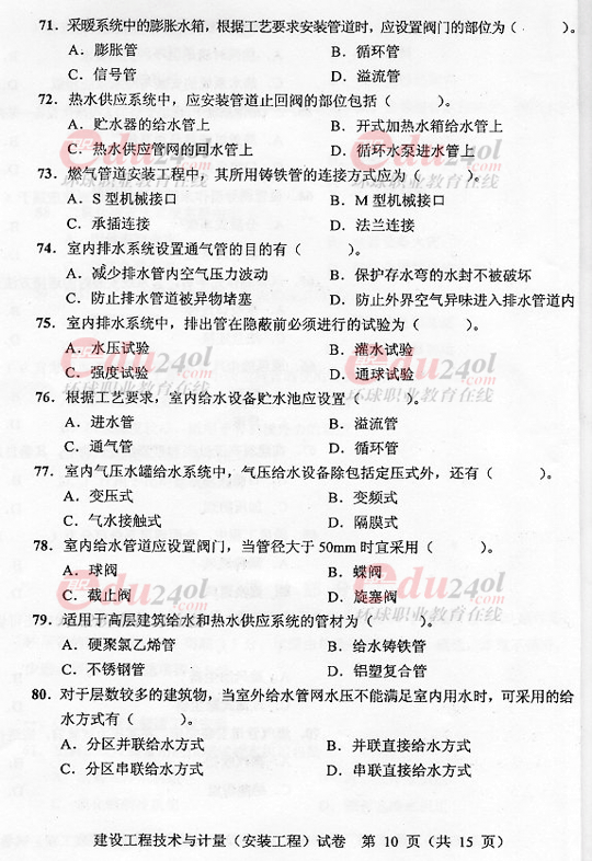 - 2025年一級造價師《安裝計量》真題答案61-70題2025-10-23