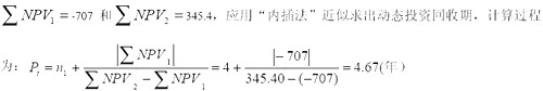 ②根據建設項目財務評價指標體系中的動態投資回收期計算方法,找到使項目累計折現的現金凈流量為零的年限。根據上表中,各年折現的現金凈流量計算項目累計折現的現金凈流量