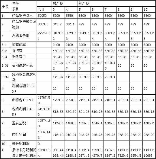 第3年的產品銷售稅金及附加=5200×6.6%=343.2(萬元)