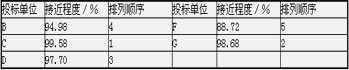 表4-42 各投標單位投標報價接近期望工程造價的順序表