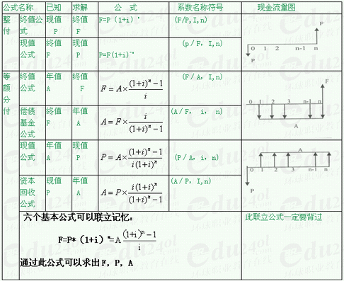 資金的時(shí)間價(jià)值的復(fù)利法計(jì)算六個(gè)基本公式