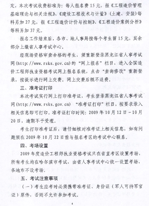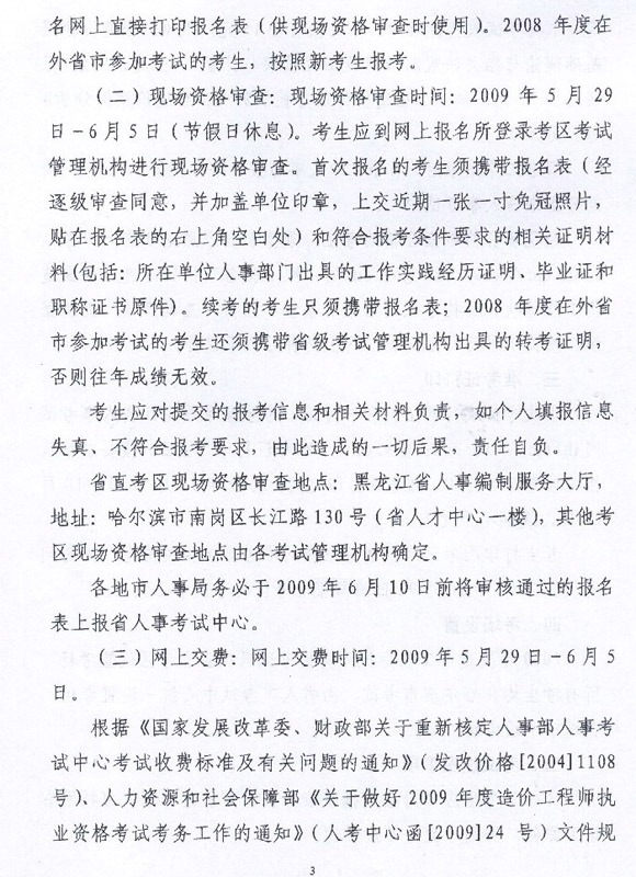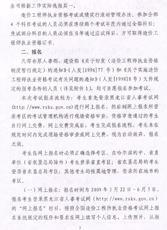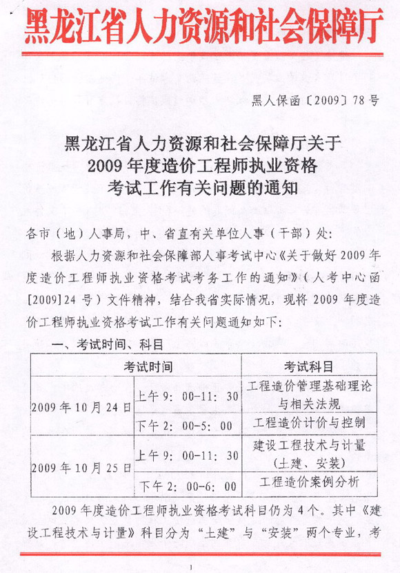 黑龍江關(guān)于做好2009年度造價工程師執(zhí)業(yè)資格考試工作有關(guān)問題的通知