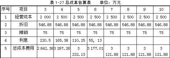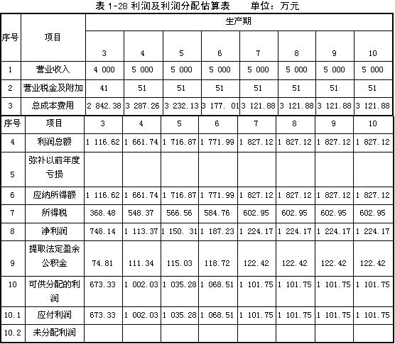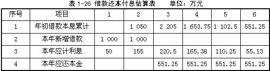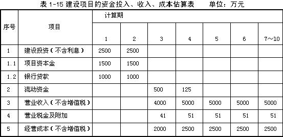(3)建設(shè)項(xiàng)目的資金投入、收入、成本相關(guān)數(shù)據(jù)見表1-15。