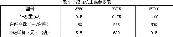 該公司現有WY50、WY75、WYI00挖掘機各2臺以及5t、8t、10 t自卸汽車各10臺,主要參數見表2-7,2-8所示。