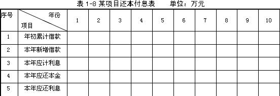 (2)編制項目還本付息表(將計算結果填入表1-8)。