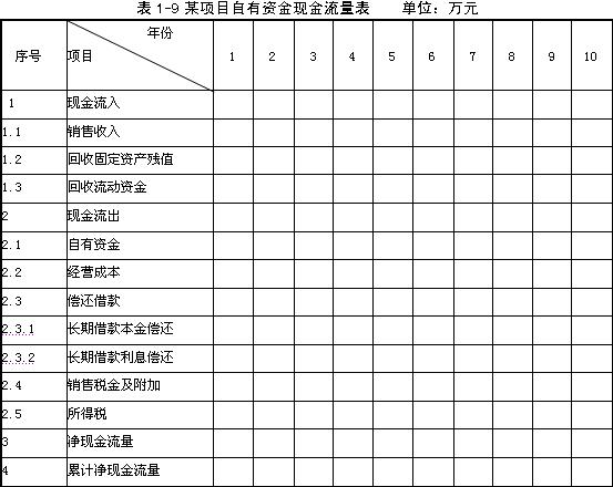 (4)編制項目現金流量表(將現金流量有關數據填人表1-9)。