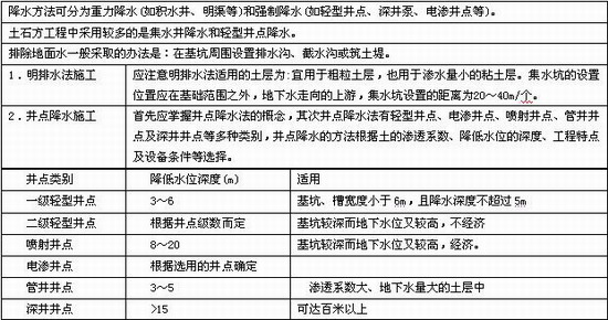 2006考題:某建筑物需開挖寬20米,長100米。深10米的基坑,地下水位低于自然地面0.5米,為便于施工實施降水措施,降水方法和布置形勢應采用(C D)