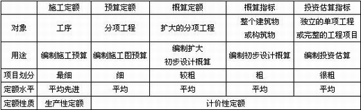 2)按定額的用途分類的五種定額,掌握各種定額間的相互聯系。參見表2-1-1。