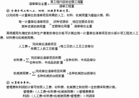 當采用清單單位含量計算人工費、材料費、機械使用費時,還需要計算每一計量單位的清單項目所分攤的工程內容的工程數量,即清單單位含量。
