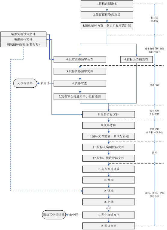 建設項目施工招標是一項非常規范的管理活動,以公開招標為例,一般應遵循以下流程,如圖4。1所示。