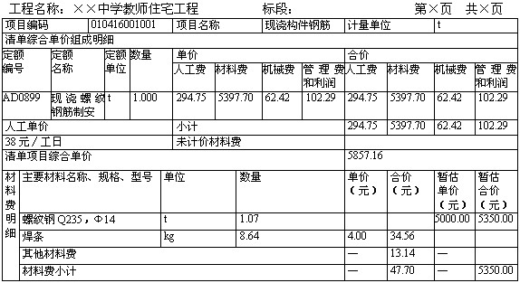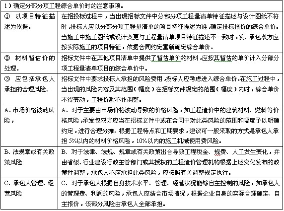 將五項費用匯總之后,并考慮合理的風險用后,即可得到分部分項工程量清單綜合單價。