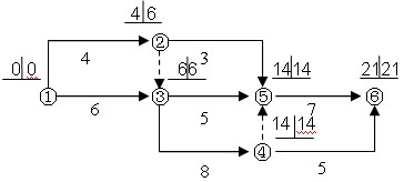 77、某工程雙代號網絡計劃如下圖所示,圖中已標出的各個節點的最早時間和最遲時間,該計劃表明(ABC)。