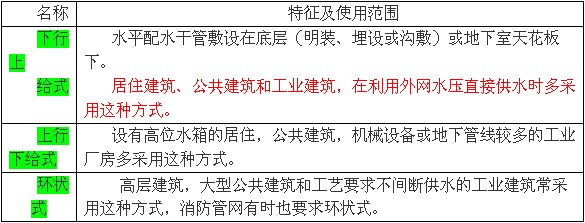 1) 熟悉給水系統的構成、給水方式的特點及其適用條件;