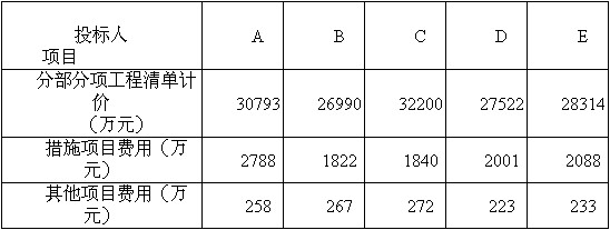 某市一項重點工程,采用工程量清單方式公開招標。招標文件中附有該項目土建工程工程量清單,要求投標人根據(jù)本企業(yè)能力確定直接工程費、措施費、管理費率、利潤率(規(guī)費費率為5%,稅率3.41%)。經(jīng)資格審定后確定的合格投標人名單包括A、B、C、D、E等5家資信和能力符合要求的施工企業(yè)。各投標人按技術標、商務標分別裝訂報送投標文件。