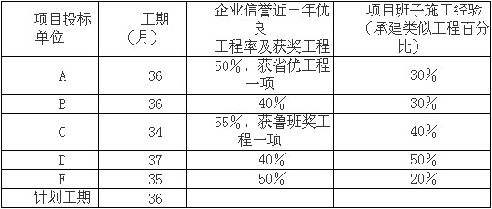 (5)工期評分原則是:以標底工期為100分,每提前5%加10分,超過規(guī)定工期為廢標。