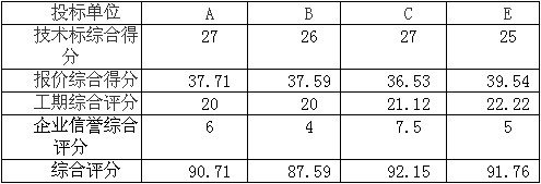 7. 根據(jù)以上得分確定C單位為中標企業(yè)。