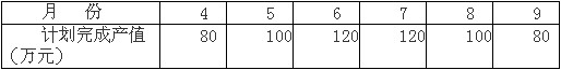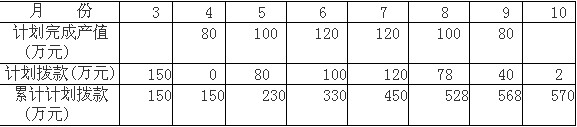 (4) 工程竣工并交付竣工結算報告后30日內,支付工程總價款的95%,留5%作為工程保修金,保修期滿后全部結清。合同中有關工程工期的規定為:4月1日開工,9月20日竣工。工程款如逾期支付,按每日3‰的利率計息。逾期竣工,則按每日1000元罰款。根據經甲方代表批準的施工進度,各月計劃完成產值(合同價)如下表所示。