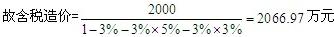 營業(yè)稅=2066.97×3%=62.01萬元